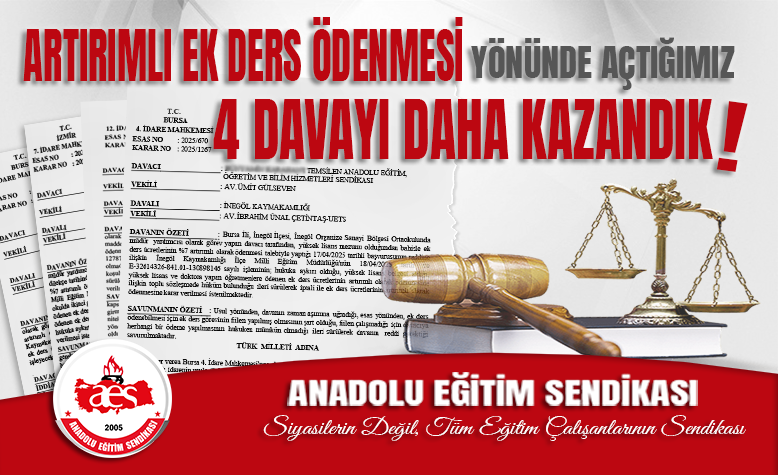 ARTIRIMLI EK DERS ÖDENMESİ YÖNÜNDE AÇTIĞIMIZ 4 DAVAYI DAHA KAZANDIK