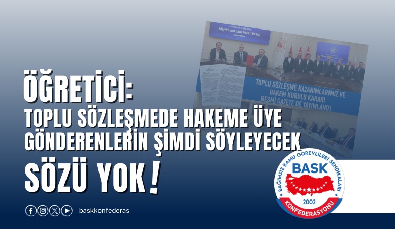ÖĞRETİCİ: TOPLU SÖZLEŞMEDE HAKEME ÜYE GÖNDERENLERİN ŞİMDİ SÖYLEYECEK SÖZÜ YOK