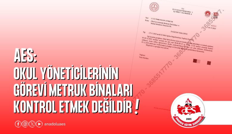 AES: OKUL YÖNETİCİLERİNİN GÖREVİ METRUK BİNALARI KONTROL ETMEK DEĞİLDİR!